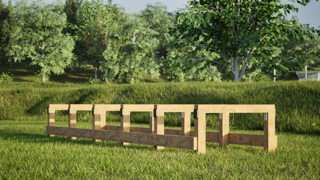 This equipment is crafted from durable larch wood combined with recycled HDPE elements, ensuring a robust and eco-friendly structure that withstands outdoor conditions while maintaining a natural aesthetic.