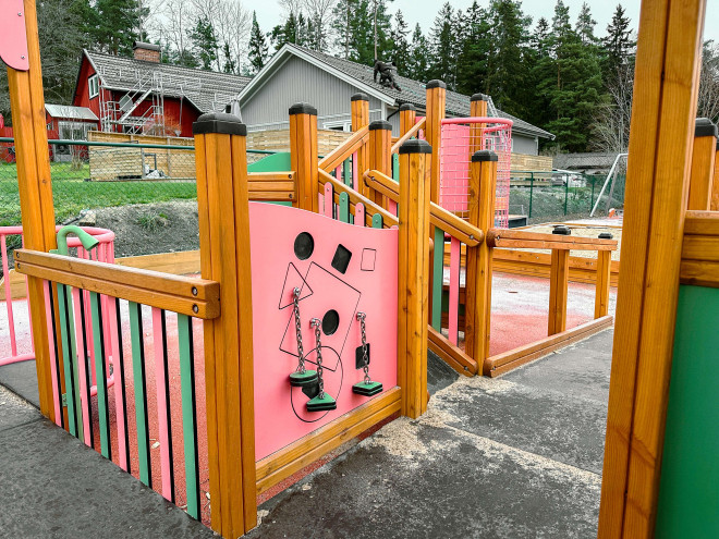 Crafted from durable larch wood complemented by stainless steel and powder-coated steel components, Campanille ensures longevity and resistance to outdoor conditions. The use of fibreglass and HDPE adds to the structure’s robustness, while anti-slip waterproof plywood provides safe, secure surfaces for little feet. High-quality PE elements contribute to a vibrant and engaging play experience.