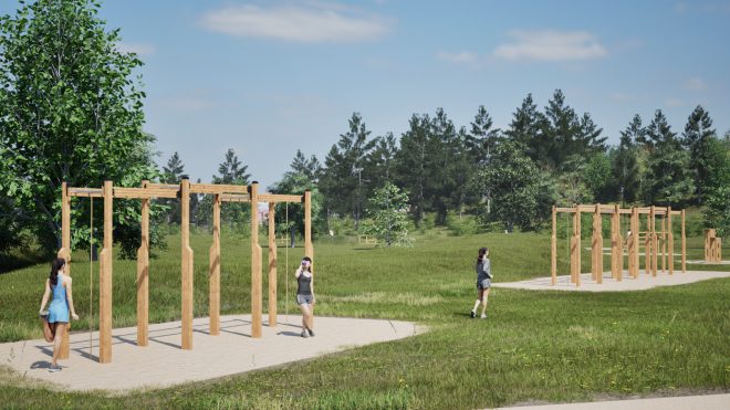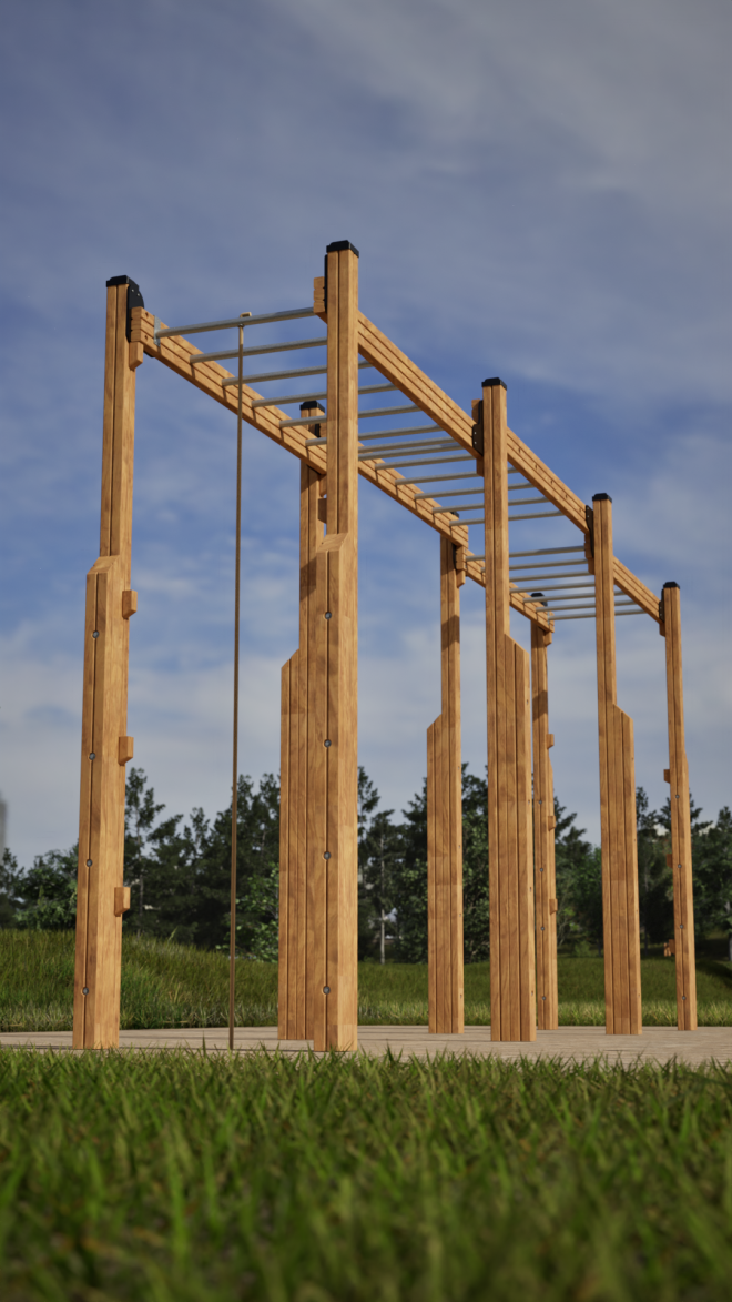 This equipment is crafted from high-quality larch wood, known for its natural durability and resistance to weather. The structure incorporates galvanised steel elements to ensure long-lasting stability and resilience against corrosion. Components made from recycled HDPE add an eco-friendly touch while maintaining strength, complemented by reinforced PP rope for added safety and reliability.
