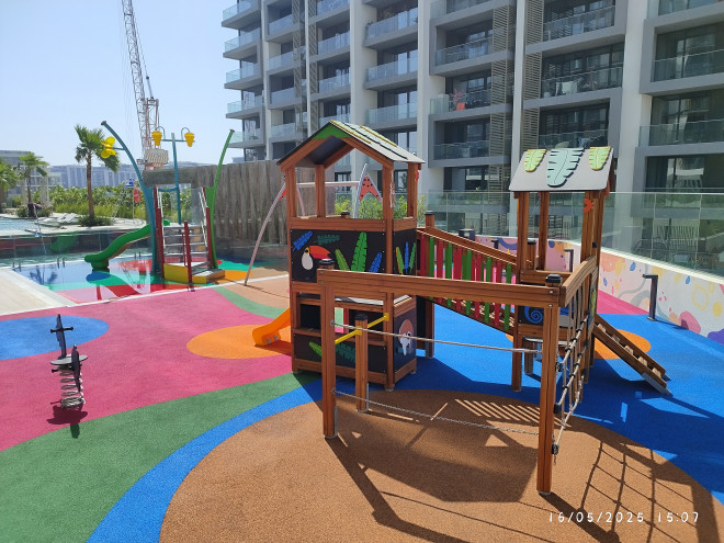 Designed with children’s safety in mind, Jungle House meets essential safety requirements for playgrounds. It features platforms at varied heights, suitable for different play stages, with a critical falling height that necessitates an appropriate falling surface to prevent injuries. The spacious safety zone around the equipment ensures a secure play area where kids can enjoy freely.