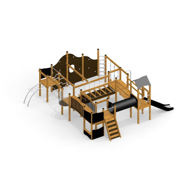 Ideal for parks, schools, and community spaces, this playground equipment encourages active play and social interaction. Its varied climbing, sliding, and balancing elements stimulate physical development and coordination, making it a versatile addition to any outdoor recreational area.
