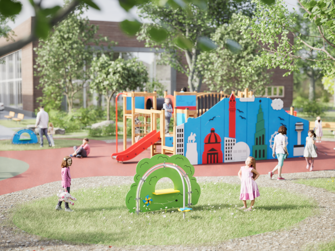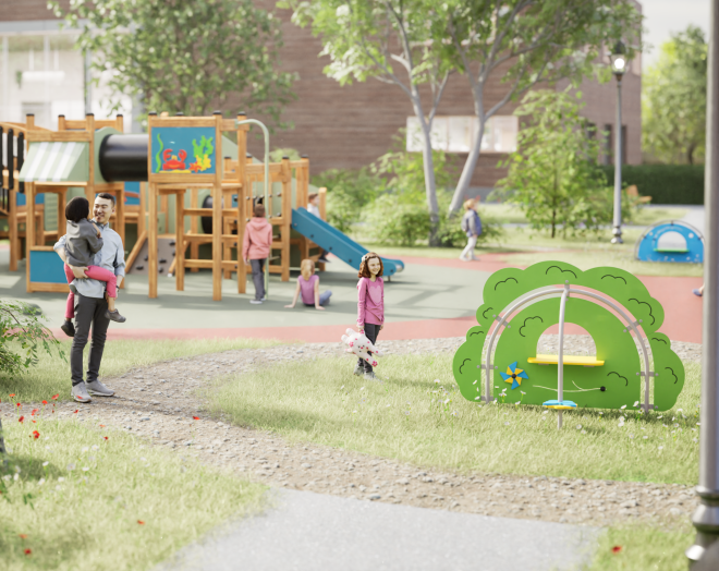 This play feature is crafted from durable powder-coated steel and high-density polyethylene (HDPE), ensuring longevity and resistance to weather conditions. The robust construction guarantees a stable and safe environment for the youngest users, while the bright colours remain vivid over time.