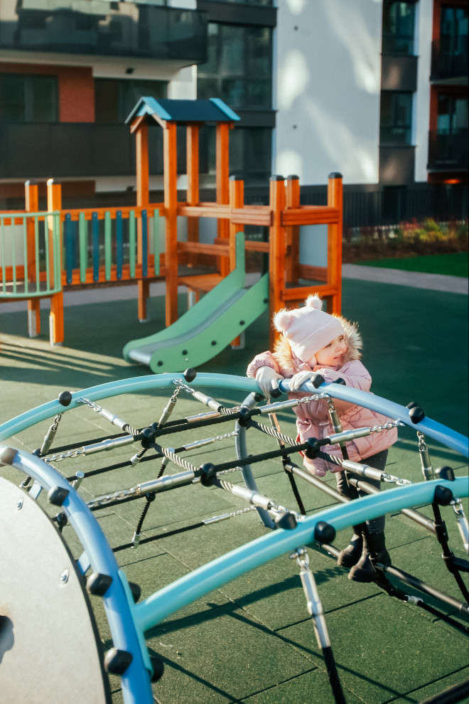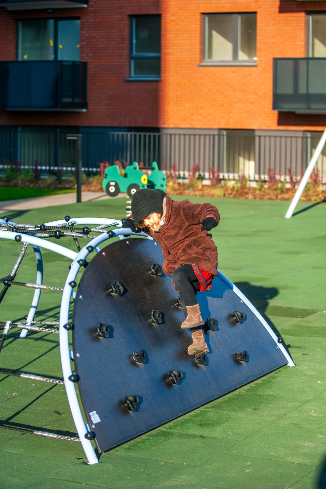 With a height tailored to suit young children, the Mini Climber complies with safety standards for critical falling height, requiring an appropriate falling surface beneath to minimise injury risks. Its design includes a generous safety zone around the structure, ensuring a secure environment for energetic play and confidence-building activities.